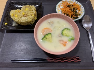 先日のお昼ご飯は、職員手作りのクリームシチューでした。