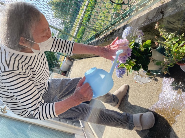 すぃーとハンズ嵯峨野グループホームでは施設敷地内で育てている野菜やお花に、水やりをしてくださっています!