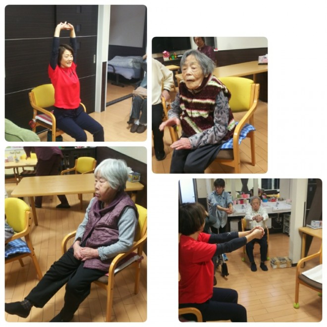 みなさんでカーネーションの塗り絵をしたり、健康維持のために足や腕をつかった体操をしました。新しい利用者様も来て下さり、みなさまで改めてご紹介していただき、和気藹々としたムードになりました。おやつにはケーキをご用意させていただきました。