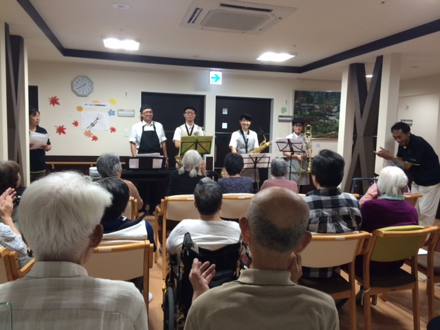 本格的なサックスの演奏にご利用者からも「かっこいい」「又来てね」の声援が会場を沸かしてました。ルパンのテーマには私も感動しましたね~