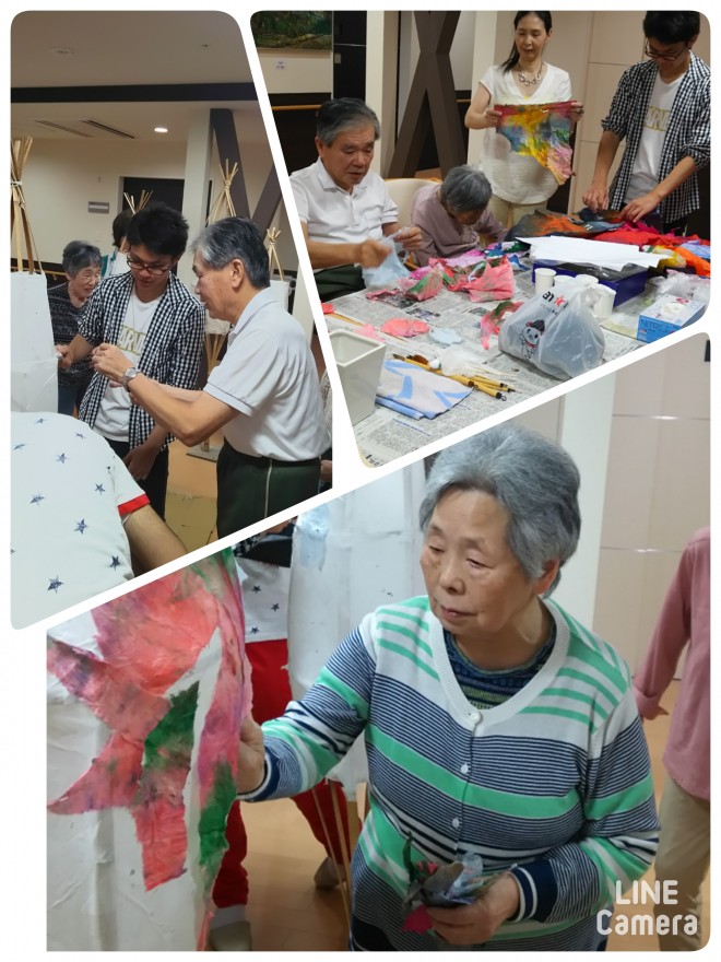 思い思いに行灯に色紙を貼りました。