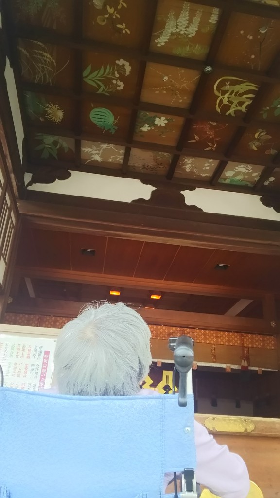 お参りするところの天井絵。細かい描写された四季折々の植物画が描かれていました。