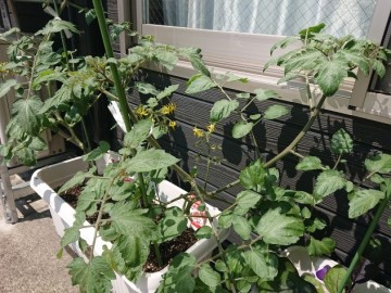 以前紹介した育て始めた「プチトマト」と「ナス」。